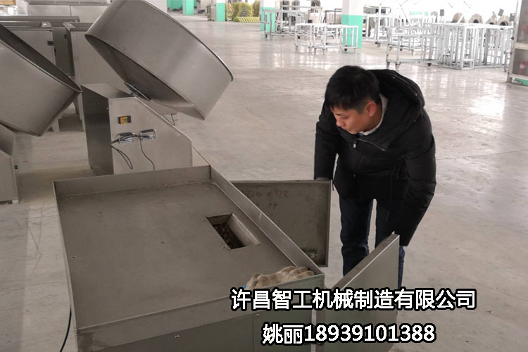 2019年1月24日鄭州月旺食品李總一行兩人來到許昌智工再次商談采購(gòu)元宵制餡機(jī),湯圓滾制機(jī)!湯圓元宵制餡機(jī)和滾圓機(jī)是配套設(shè)備,湯圓制餡機(jī)是直接將各種餡料壓制出圓球型湯圓陷,湯圓機(jī)是把壓制好的餡料放在里邊,再放一些干的糯米粉一層一層滾制成成品的設(shè)備。代替手工制作,又不失傳統(tǒng)風(fēng)味的湯圓機(jī)器。